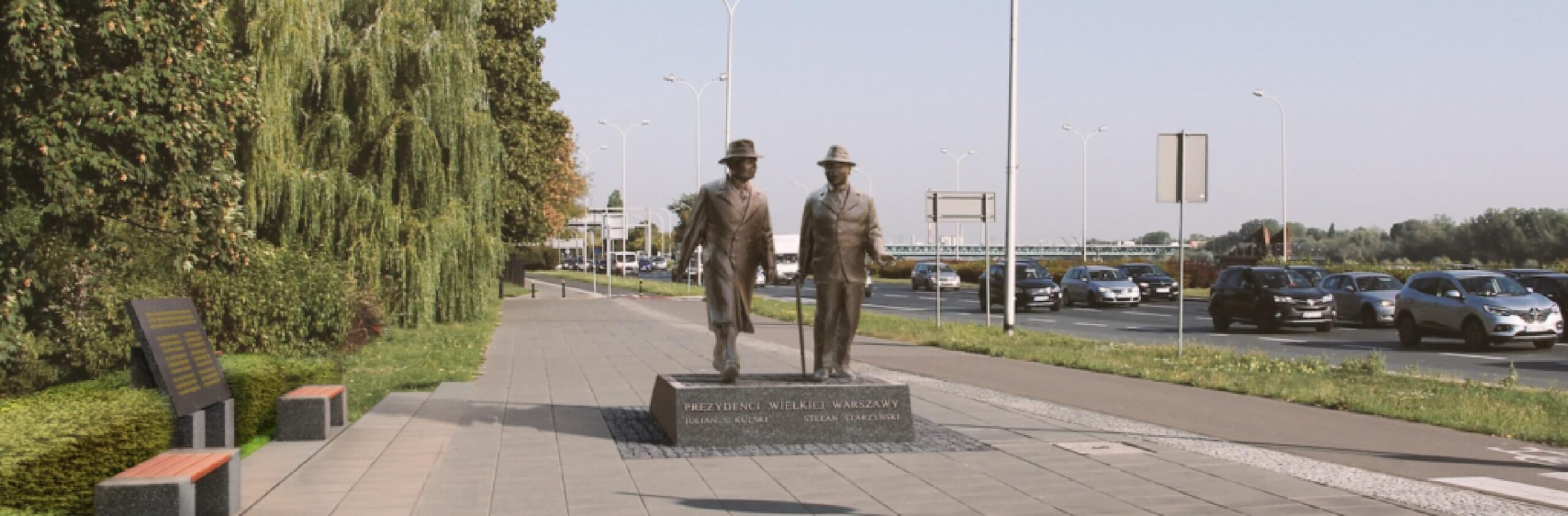 The monument commemorates two figures of great merit for the development of the Polish capital – Stefan Starzyński and Julian Spitosław Kulski, the Presidents of Warsaw. It is to pay a tribute to their services to the civilian population during World War II and contribution to the development of the capital’s infrastructure in the interwar period. The inspiration for the sculptor Paweł Pietrusiński was a photo showing presidents Starzyński and Kulski visiting the area of the then built Vistula boulevards.